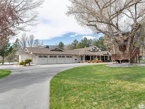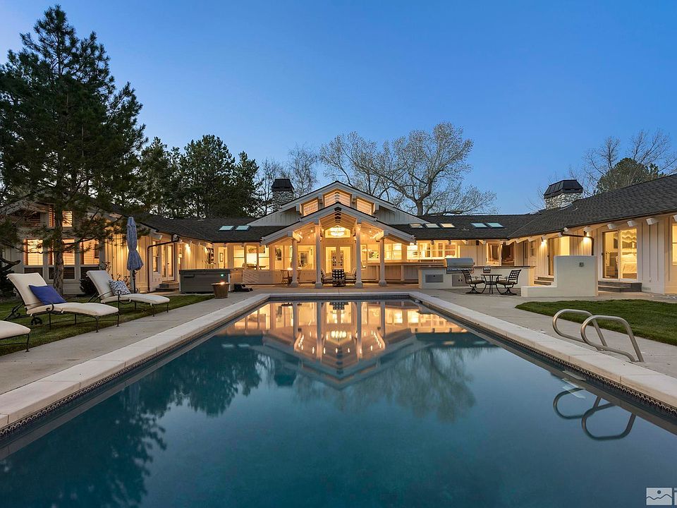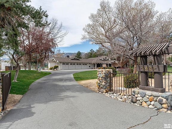 A Reno masterpiece within a gated sanctuary, this expansive one-story residence epitomizes luxury living while offering the utmost privacy and convenience. Centrally located, this estate sprawls over 3 acres of meticulously landscaped grounds with multiple large, mature trees, providing a serene retreat reminiscent of country living in the heart of town., Built with the highest quality craftsmanship, the heart of this home revolves around its spacious kitchen and living areas, which artfully separate the east and west wings. The west wing includes the primary bedroom and bathroom suite, his and her closets featuring a washer and dryer, a versatile gym with closet space, and a large office with his and her workstations. The east wing includes a spacious bonus room, a large laundry room with dual-stacked washers and dryers, three fully renovated bathrooms, and four sizable bedrooms that open onto the pool and courtyard, seamlessly blending indoor and outdoor living. The main living areas feature timeless Saltillo floors- the newest trend in sophisticated design living that combines modern features with old-world charm. The rest of the home features recently refinished wood floors, while vaulted ceilings with beautiful wood beams and skylights bring a natural warmth to the entire home. More than ample storage hides in every corner of this home to add equal practicality to the luxury. Step outside to discover a true oasis, complete with a sparkling pool, inviting hot tub, and an outdoor kitchen and fireplace. Equestrian lovers will delight in the barn and corral with four horse stalls, while hobbyists will appreciate the oversized 90 ft by 30 ft workshop with a loft and more space for toys than one will know what to do with. For outdoor enthusiasts, the lit tennis/pickleball/basketball courts beckon for friendly matches under the stars, while a playset in the backyard and swing in the front yard promise endless fun for children and guests alike. Green thumbs will relish in the greenhouse, garden boxes, and abundant fruit trees dotting the landscape. This property offers not just a home but a lifestyle that is hard to replicate anywhere in Northern, NV – and one where every season is savored against the backdrop of stunning views of Mt. Rose from almost every part of the estate. A true paradise to host and entertain in year-round, don't miss the opportunity to make this unparalleled retreat your own and experience the best of Reno's four seasons in style.