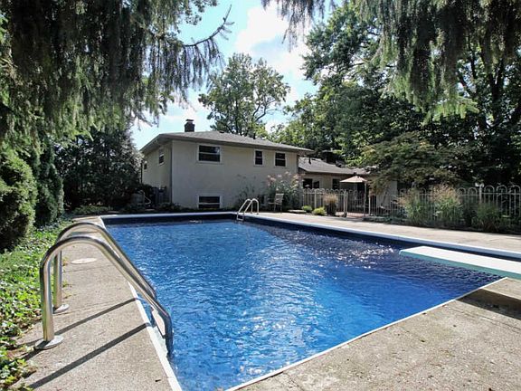 Welcome home to a mid-century split level that looks almost new! Updated with refinished hardwoods, paint, carpeting, and more, you could be in it for the holidays. The living room features a stunning stacked-stone fireplace and large bay window. The eat-in kitchen has white cabinets, subway tile, black granite, stainless steel appliances with new gas range, and large dining room. Upstairs are two bedrooms, a full bath, and master suite. The family room level has a painted brick fireplace and built-in bookcase with wood storage box; a bedroom; a full bath; and laundry room with access to the back yard. The basement is finished and would be perfect as a rec room. Outside is fenced yard with mature shade trees, brick patio, storage shed, and pool with a new liner and child-safety fence.