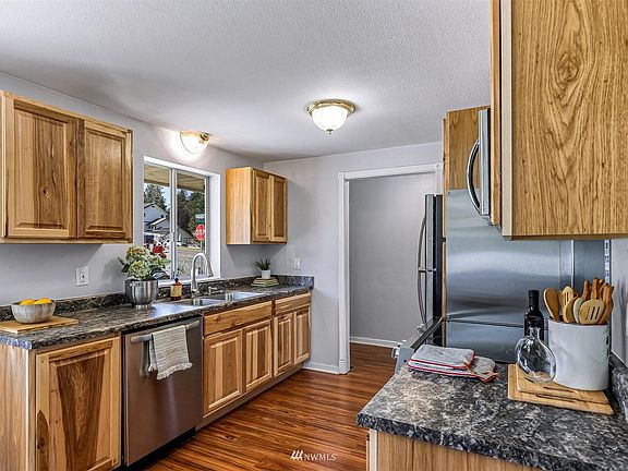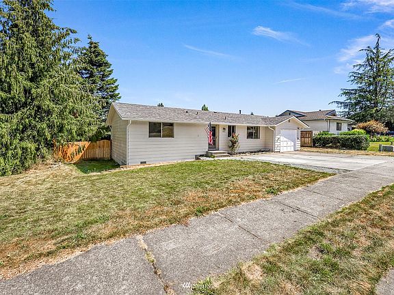 Move in Ready - One level, easy low maintenance Northwest lifestyle found here. This 3BR, 1.25 BA Updated Rambler + huge crawlspace/work area below has: New Roof, New Kitchen, New Flooring, New paint inside & out. All new stainless appliances AND a new furnace. Full bathroom has been updated with new flooring, new cabinet, lighting and sink. Wander around outside, you see you've got plenty of space for gardens in the back yard, a great deck for BBQ's & fully fenced for privacy. There's outbuildings for hobbies/storage. Utility room/Laundry area in garage includes washer/dryer with a mud sink & toilet. Gas heat and water. One-car garage + RV parking. Short walk to the YMCA and bus route too.