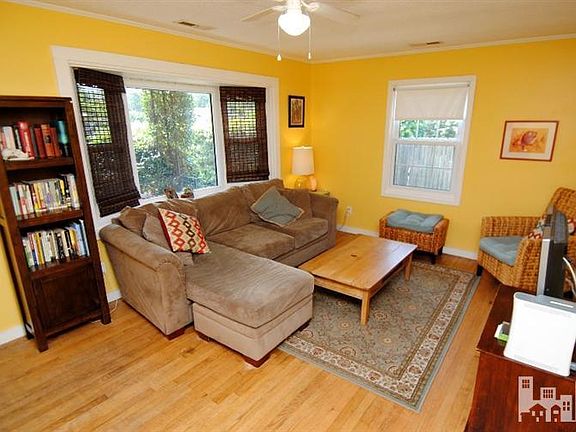 Charming 1953 cottage w/ original hardwood flooring and fresh paint throughout. 2 bedrooms plus an additional bonus room that can be used as a 3rd bedroom, office, or playroom. Relax on the covered front porch or entertain on the large back deck. This property is fully fenced and boasts a wired, 1 car detached garage plus a large dog kennel in back. Located near the port and just minutes from Downtown Wilmington or Carolina Beach!