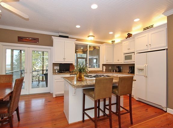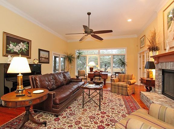 This stunning home, graciously situated under stately oak trees and overlooking the Stono River, offers the best of the Low Country. Lovingly maintained and immaculate, this home has a wonderful floor plan which makes a smooth transition from one room to another affording the opportunity to enjoy the magnificent river and marsh views from many different rooms. Enter into the vaulted foyer which spills into the great room and formal dining room which are both detailed with beautiful moldings and built-ins. This gracious home, which lends itself to entertaining as well as everyday living, has beautiful wide plank antique heart pine floors throughout the downstairs living area. The master suite with its own fireplace is conveniently located downstairs and boasts a large bathroom with dual sinks, granite countertops, two walk in closets, a garden tub, and separate shower. Step from the master suite into the sun room and enjoy a cup of morning coffee or curl up and read a book while taking in the seven magnificent oak trees and breathtaking river views. The cook in the house will enjoy the spacious eat-in kitchen with the picturesque river and marsh views as well. There are plenty of countertops to help plan and prepare a meal for the family or for entertaining and the large kitchen island is a grand space for guests to sit and chat while the meal is prepared. Sunlight pours into this lovely room making it bright, cheery, and inviting. Off the kitchen is a screen porch and an adjacent deck with its gas outlet for an outdoor gas grill. Entertaining made simple! The second floor has three more bedrooms, two of which have stunning river and marsh views as well as outside access to decks. Convenient for storage, there is a tremendous walk in attic situated in the upstairs hall. As the house is elevated, there is plenty of room for 3 cars or tractors and boats. Also, there are two separate rooms in the garage area for storage and for a workshop. This unique property is directly across the Stono from James Island County Park and boasts its own private dock with floating dock and pier head with electricity and running water. The current owner docked a 32' inboard sport fisherman on the inside and outside of the dock for many years. There are many more upgrades and features such as Geo thermal heat pumps in a closed loop system, 2 year old architectural roof, outdoor specialty lighting to accent the oak trees, just to name a few. This property affords the luxury of being only 15 minutes to downtown but having all the joys of living in the country and enjoying boating, fishing, and all the water sports, not to mention the peace and tranquility away from the hustle and bustle of everyday living. Make an appointment to see this bit of heaven - hopefully, you will get to experience the majestic views of the river and oak trees as the sun sets over the Low country. Current as of 2013-04-28.