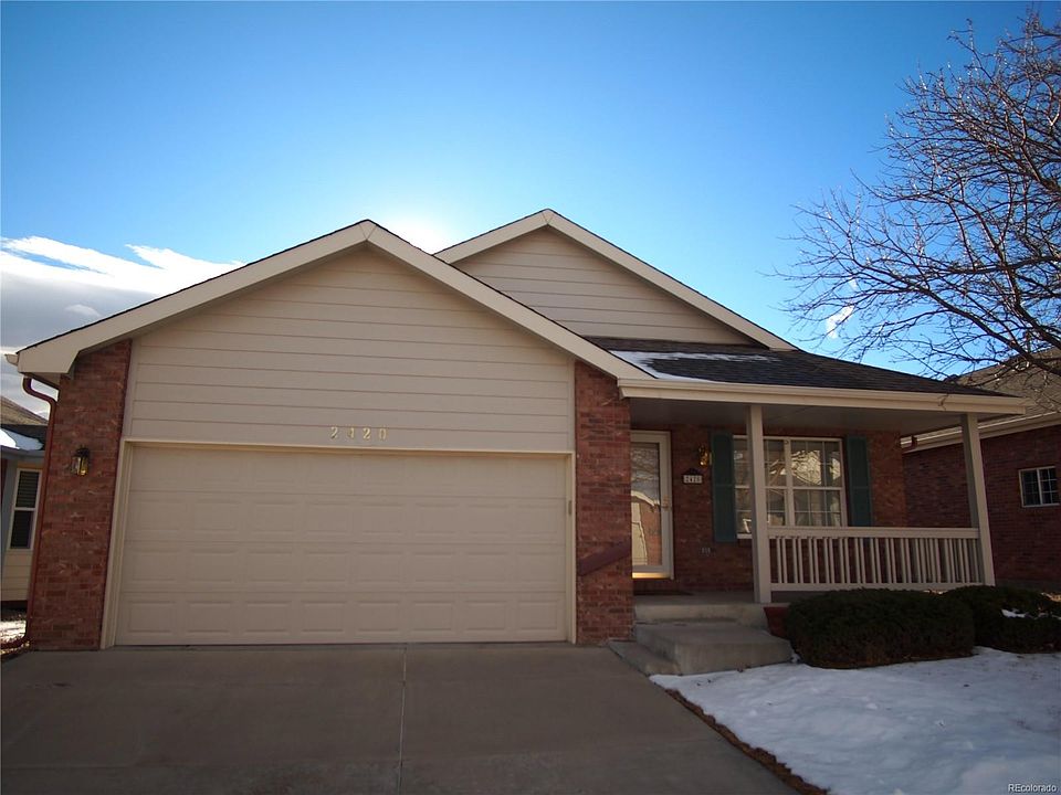 Charming 2 bedroom, 2 bath in Loveland. Landscaped and curb appeal, covered front porch. Well maintained, open floor plan, inset lighting, gleaming floors. Kitchen open to family room and eating area with lovely bay window. Large garden level basement with mountain views, wood paneling with wainscoting and lots of storage space with great potential for finishing. Big backyard with a fantastic elevated covered Trex deck perfect for entertaining family and friends. Great mountain views, backs to a green space.