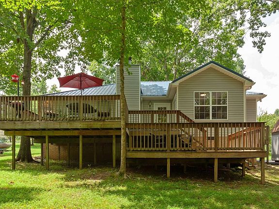 This large 1+ acre lot includes a park-like setting with a creek, an abundance of mature trees, and a beautiful 3 bedrooms/ 2 baths home with new flooring, new roof, new hot water heater; Vaulted ceiling in the family room and a wood burning fireplace located at the end of a quiet cul de sac. A large 2 level deck is situated on the back of the home for tons of privacy. Also included are 2 large storage buildings w/loft shelving for extra storage.