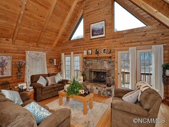 Custom log home is builders personal residence. Country living on 21 mostly wooded acres. Impressive soaring ceiling in great room w/ massive stone fire place. Large master w/ sitting area, beautiful bath & walk in closet. Dream kitchen w/ Amish cabinets. Dry basement w/ 4th bath (unfinished). Detached wood fired boiler heating option. Mountain views.