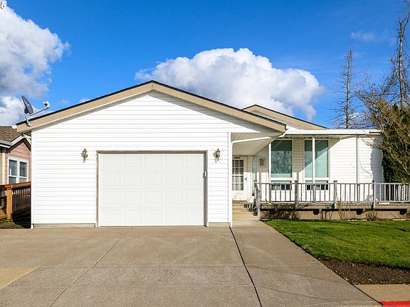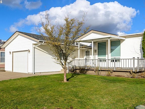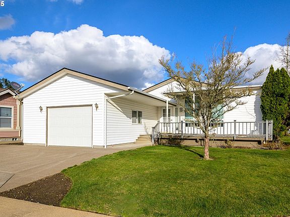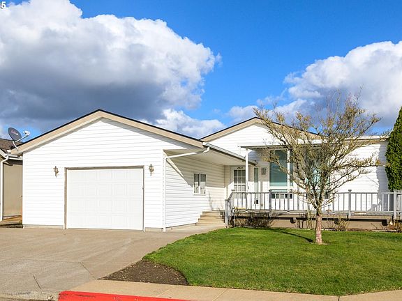 Discover this spacious and inviting 3-bedroom, 2-bathroom manufactured home, perfectly situated on its own land in a desirable 55+ community. This well-maintained home boasts high ceilings, an open floor plan, and plenty of natural light throughout.The large kitchen is a chef’s dream, featuring an expansive island, abundant cabinet space. Both bathrooms have been recently updated with new fixtures and toilets. The home offers a quiet and peaceful ambiance, perfect for relaxation. Enjoy outdoor living with a covered patio and an expansive front porch, ideal for morning coffee or evening gatherings. New privacy fence just installed in May. The attached garage provides convenient parking and storage. This home is a blank canvas, ready for a new owner to add their personal touch. Don’t miss this opportunity to own a beautiful home in a welcoming, low-maintenance 55+ community! Schedule your showing today!