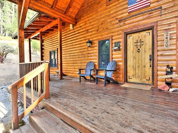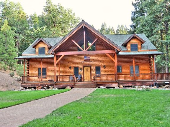 This custom log cabin, built in 2008, sits on 10 private acres cleared for fire safety. The property includes a generator hookup, a high-producing 100+ GPM well, and a durable 50-year composition roof. Step outside to explore hiking and biking trails on your own land, pick apples from the trees, or let pets roam the fenced backyard. In winter, enjoy sledding and snowshoeing just steps from your door. After a long day, relax in the sauna or gather around the firepit. Inside, soaring vaulted ceilings, exposed beams, a dramatic stone fireplace, and expansive windows fill the home with natural light. Wide-plank hardwood floors and log walls create a timeless mountain-lodge feel. The chef's kitchen features custom cabinetry, granite counters, and a large center island. Upstairs offers a spacious loft overlooking the great roomperfect for a game room, gym or office. Bedrooms include secret lofts that make whimsical hideaways for kids. Just 2 miles from Sly Park Lake, minutes to Forest Service land, 45 minutes to Sierra-at-Tahoe, and 30 min to Costco. This is more than a home, it's a retreat that combines the peace and beauty of country living with the convenience of being close to everything you need.