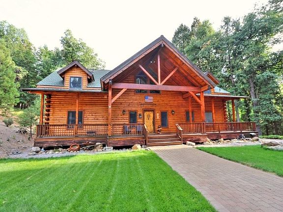 Custom log cabinSpacious loftSecret loftsDramatic stone fireplaceFenced backyardLarge center islandExpansive windows