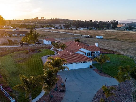 Spacious custom 4-Br/3-Ba home has it all--fabulous kitchen with granite counters, pantry, breakfast bar and window-framed nook open to large family room with focal point fireplace. Gracious formal dining and living rooms plus wet bar for entertaining. Spacious master suite features walk-in closet and bath with tub & separate shower plus patio and backyard access. Home includes large laundry room with added storage, 5-car garage parking, including 1 detached garage with separate driveway. Bring your horses and hobbies and enjoy entertaining or the quiet serenity of this lovely property surrounded by sunrise to sunset pastoral and hillside views.