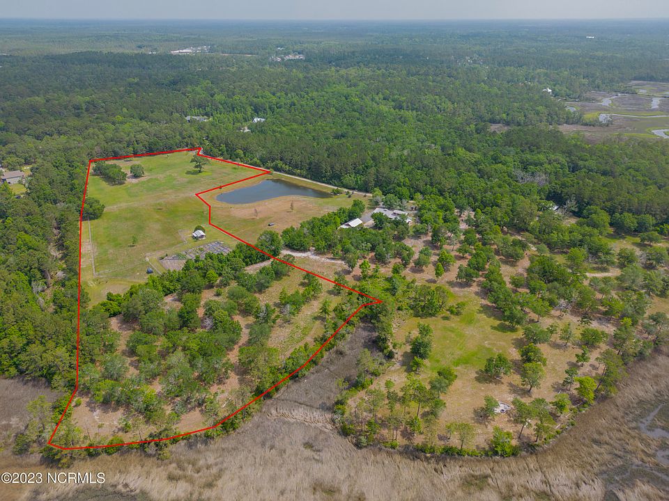 Horse farm on the water? Impossible you say? A truly unique opportunity is this 14-acre site on the Lockwood Folly River looking across at the shrimping fleet of Varnumtown. It has an elevated 3 acre waterside lot with a 210 degree view down ''the Folly'' to the ICW at Lockwood and 8 acres of secluded pasture (3 newly fenced in and 5 acres of open pasture with mature shade trees), ideal for horses or a hobby farm. The pasture tract has two deep wells, a 3/4 acre garden surrounded by a 7' deer fence, and a small barn or garden house/she shed. The property is accessed by a quarter mile long sandy drive which is bordered by two other homes (each on 5+ acre lots) which further adds to the secluded nature of the property. The pasture section of the property is surrounded on two sides by a large, wooded berm that assures unparalleled privacy as well as frequent visits by deer, wild turkeys, geese and ducks. This is a truly bucolic oasis ($1,050,000) in fast growing waterside Brunswick County. As this is a sub parcel of the 25 plus acre farm (plot is included in the documents) please note that the full farm is for sale as described in MLS #100386629.