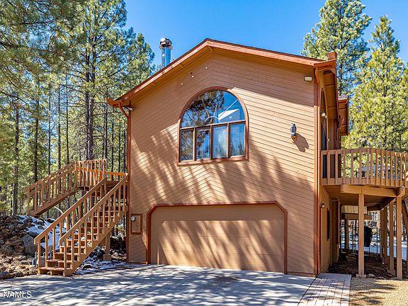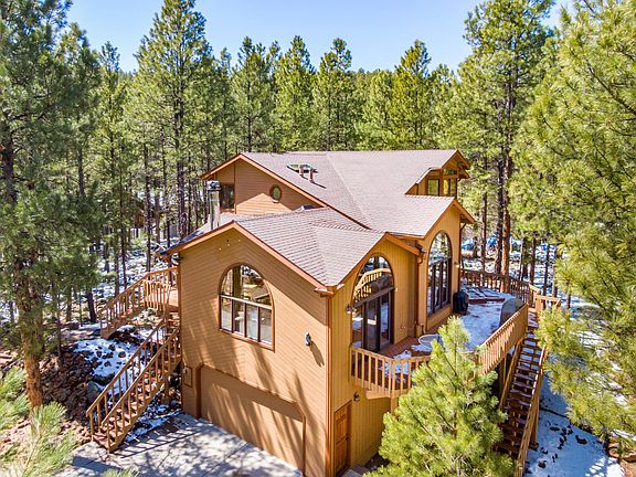 MOUNTAIN LIVING AT ITS PEAK! Come Enjoy Your Luxury Cabin in the Tall Pines on Over .6 Acres all the while Experiencing Dramatic Views of the San Francisco Peaks. This PrimeTime Cul-de-Sac Location Boasts a 4 Bedroom / 3.5 Bath Property that Guarantees Not to Disappoint. This Custom Designed Home has been Freshly Painted, Inside and Out Including the Expansive Decks. Whether it be the Vaulted Ceilings, Clearstory Dual Pane Windows Throughout, or Third Level Primary Suite with Private Balcony this Home Simply Enhances & Embraces the Small Mountain Town Feel. The Fact it is so Close to Mt. Elden, Az Snowbowl, the FUTS Trail System, Shopping and Downtown Only Makes it More of the Perfect Location to Experience all 4 Seasons. Add The Hot Tub and Full Atrium to make this the Ideal Property!