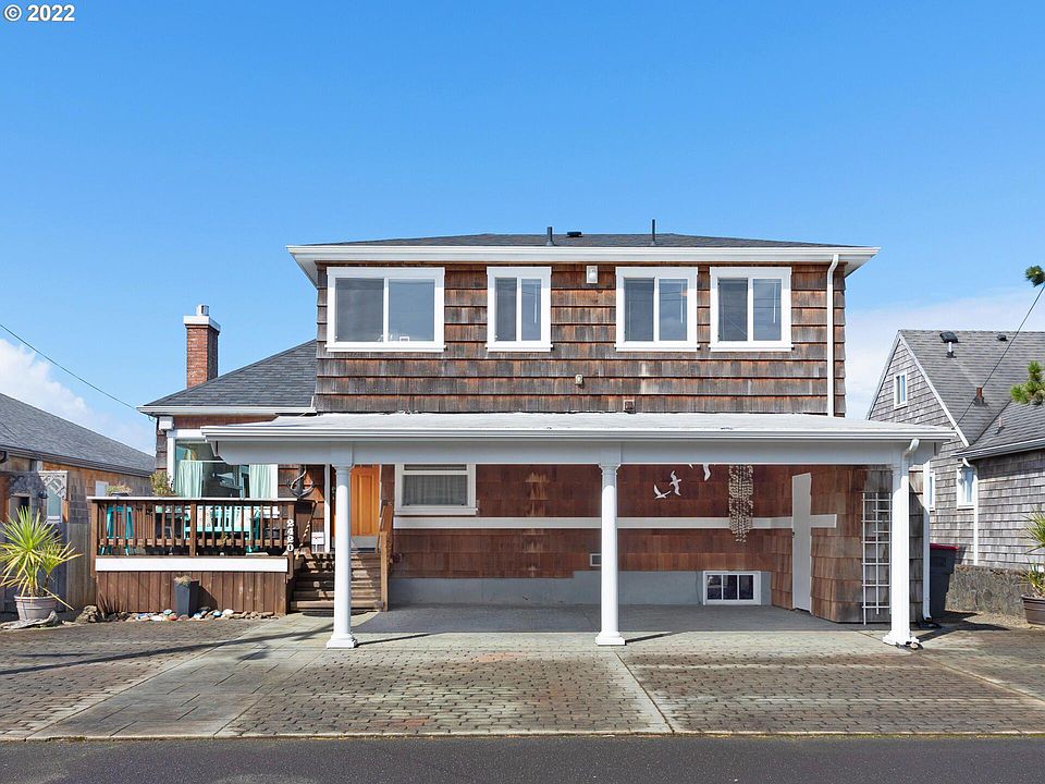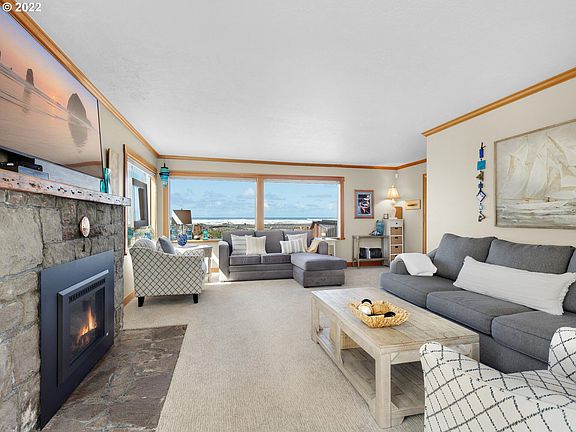 Seaside Oceanfront Classic w/Breathtaking Views! Enter into this immaculate 4 bed 2 bth home & feel immediately transported to another world! Take in views from liv rm w/rock gas fp, dining rm w/built-ins & slider to expansive deck, kitchen w/eating bar & new lvt flrs. Two bedrms & full bth complete the 1st flr. Upstairs is spacious primary bedrm with O/V sitting area, full bth and 4th bedrm. Unfinished bsmnt has game & laundry areas. Now is the time to start making treasured family memories.