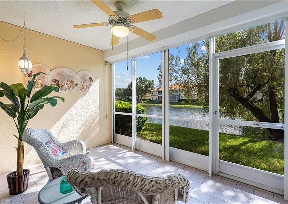 This is an end unit, first floor, and just a few steps from one of the private pools. Enjoy the lanai with shade tree and view of lake.