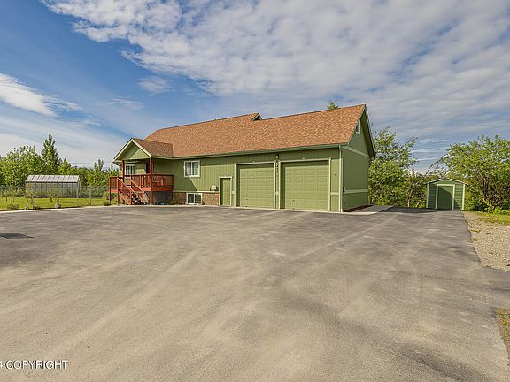 Embrace the charm and comfort of this 5-bedroom, 3.5-bathroom sanctuary, offering over 2,800 square feet of pure luxury living. From the moment you arrive, you'll be enchanted by the chef's dream kitchen, complete with granite countertops, stainless steel appliances, and stylish tile backsplash.Ample storage space throughout, including a spacious pantry to accommodate all your culinary treasures. Hosting made easy on the expansive covered Trex deck, surrounded by lush landscaping and raised garden beds. Never-ending adventures await with paved RV parking, and an oversized garage boasting 12-foot ceilings. A separate Mother-in-Law suite beckons with its own private entrance, perfect for guests or rental income. Take in breathtaking views from the bluff lot location, a tranquil oasis away from the city buzz. Unwind in your garden greenhouse, or explore the wonders of Alaska right from your doorstep. Nestled in a quiet cul-de-sac, yet just moments from outdoor recreation and community amenities. Ready to experience the best of Alaskan living? Schedule your tour today and make this your new home sweet home!