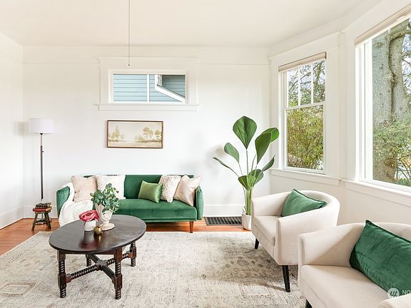 Experience the allure of history with this captivating Craftsman bungalow home in the heart of Judkins Park. Timeless stained glass windows create a sense of warmth that invite you in, while the large bay windows illuminate both the living and dining areas with radiant natural light. Refinished fir wood floors, freshly painted interior, and updated bathroom done for you. Discover boundless storage options within the basement, while outside, a fully fenced backyard awaits. Convenient alley access provides off-street parking, complete with EV charging capabilities. Enjoy nearby Judkins Park LR station (2025), numerous parks, I-90 bike trail, and I-5/I-90 easy access. Huge lot zoned for ADUs. Get ready to relax on your front porch this spring!