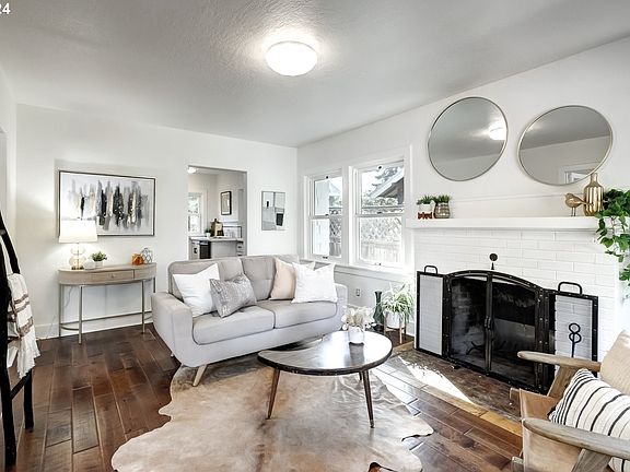 Charming bungalow in the vibrant Division neighborhood in the heart of SE Portland! Perched above the street for privacy and with internal access to the garage (complete with EV charger) this delightful home has been thoughtfully enhanced having just been professionally and stylishly painted both inside and out. The living and dining area provides a perfect place to unwind whether you’re curling up with a book by the fireplace or gathering with friends. The clean and crisp kitchen is ideal for creating culinary delights, while the sweet and tidy backyard with brand new sod is fully fenced for your furry friend. There's a gas hook-up for the grill and the side yard is all set is for your raised garden beds. And there's AC! Both serene bedrooms, feature engineered hardwood floors, and offer tranquil retreats for rest or even a home office. With a Walk Score of 95 and a Bike Score of 100, you’re just steps away from SE Portland’s coolest shops, cafés, eateries, and theaters, and have fantastic access to the SE Clinton Street Bikeway and public transportation. [Home Energy Score = 3. HES Report at https://rpt.greenbuildingregistry.com/hes/OR10232736]