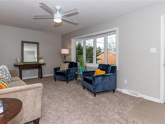 Fully remodeled 3 bedroom, 1 bath ranch ready to call home! Lots of living area in this one! Remodeled eat in kitchen with granite counter tops, tile floors, new cabinets, and fixtures as well as new SS stove, microwave, and dishwasher. New carpet throughout living room and bedroom areas. Fully remodeled bathroom with tile surround. Relax in the private backyard great for entertaining guests or playing with a furry friend. Home includes new siding, gutters, interior paint, trim, doors...too many updates to list! Large basement with plenty of storage area. Includes 2 stall detached garage. Come see it today!