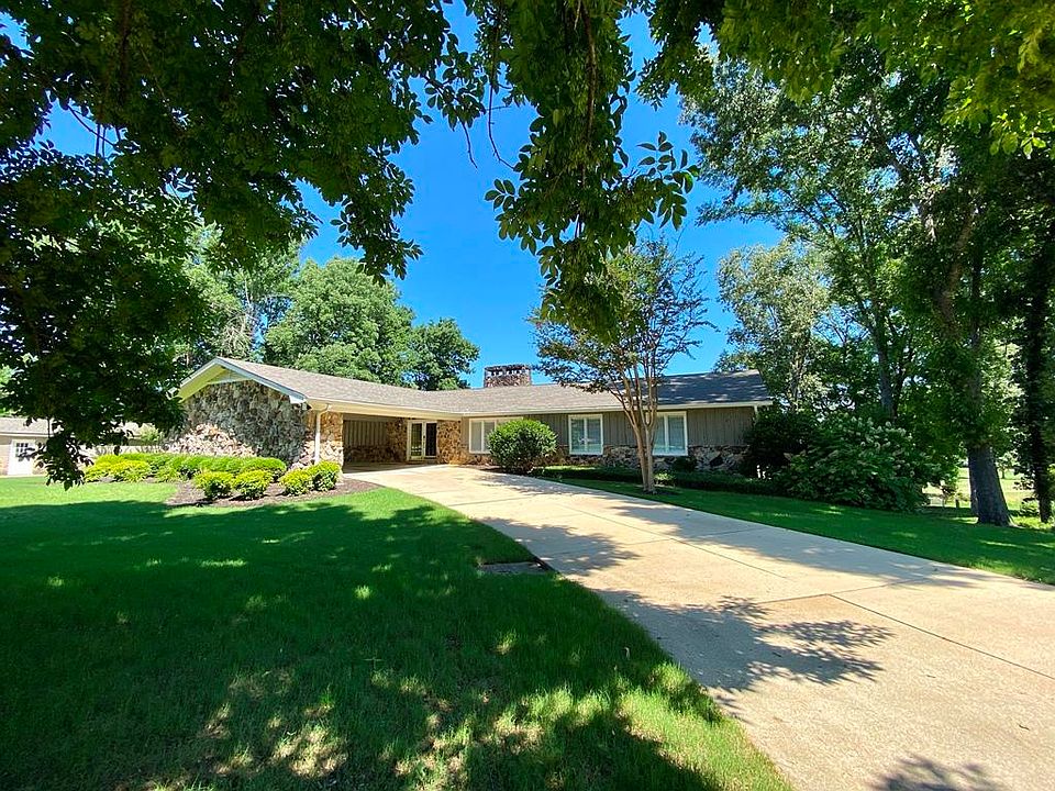 What a view! Spectacular ranch style home overlooking the golf course at Tupelo Country Club. With over 5500 square ft of living space, this home has room for entire family. Formal dining room, huge great room with beautiful stone fireplace, a wall of windows overlooking the golf course and wet bar! Large kitchen with island, double ovens, and breakfast area. Master bedroom with patio access, updated master bath which includes large tile shower with dual shower heads and a soaking tub. Three other large bedrooms all with direct access to a bathroom on the main level. This home has spectacular walkout basement w/ living room, a flex space and an exercise room or fifth bedroom. Home is all about the views and is perfect for indoor and outdoor entertaining! All info subject to verification.