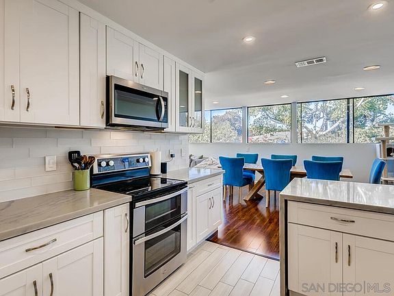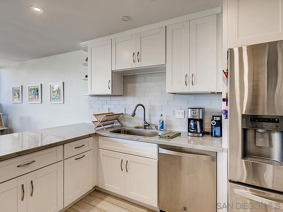 LOCATION LOCATION LOCATION. Hot off the press La Jolla Affordable Luxury w/ unobstructed sunset views. West facing single level, mere blocks from your toes in the sand! Full balconies and peak-a-boo ocean views. Immaculate single level 3 bdr, 3 bath with 2 car garage. Custom gourmet kitchen with all new stainless appliances, built in closet & pantry storage, entertainment bar and built in study/ library. Great as a residence or perfect investment rental. Minutes from La Jolla Village, Torrey Pines Golf Course and UCSD.