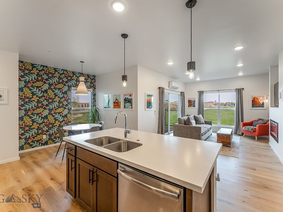Contemporary living at its finest in the heart of Bozeman. Amazing light, nine foot ceilings, built in shelving, fireplace and stunning views of the surrounding mountains show off this adorable home the moment you step inside. The kitchen features stainless steel appliances, solid surface countertops, a pantry and the perfect island for entertaining. The primary suite offers a large walk in closet and lovely en-suite bath. A nice sized guest bedroom and bathroom with walk in tile shower finish off this functional floor plan. Start your morning and end your day on your perfect covered balcony while staring at the Bridger Mountains. You will love having Rose Park and designated open space just outside your door with views in just about every direction.