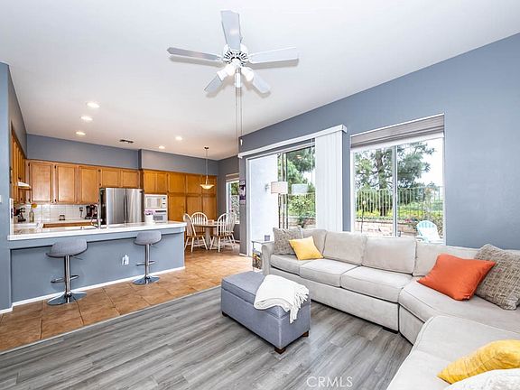 Spacious Yorba Linda single-story house with a panoramic hills view. This four-bedroom, two-bath home offers a harmonious blend of modern comforts and serene surroundings. As you step inside, you are greeted by an inviting modern, high ceiling, open floor plan that seamlessly integrates the living, dining, and kitchen, family room areas, creating ideal spaces for both entertaining and everyday living. The abundance of natural light floods the interior, creating a warm and welcoming ambiance throughout. The spacious kitchen has a breakfast nook, overlooks the family room with fireplace and boasts large view windows that frame the blossoming orange grove and foliage behind. The three generously-sized bedrooms provide ample space for relaxation and privacy. The optional fourth bedroom is being used as a home office/open den. The huge primary suite is a true sanctuary, complete with a walk-in closet and a luxurious en-suite bathroom, where you can unwind in the soaking tub while admiring the picturesque hills beyond. Includes a separate shower and double sink vanity. The convenient indoor laundry room includes the washer and dryer. Whether you're hosting a barbecue on the patio, lounging by the fire pit, or simply enjoying a morning cup of coffee, the panoramic views will be a constant source of inspiration and serenity. This wonderful home is located on a cul-de-sac street and is close to restaurants, parks, tennis courts, trails, and shopping. Blue Ribbon Bryant Ranch Elementary School, Travis Ranch Middle School, and Yorba Linda High School. The property has no HOA dues and no Mello Roos tax.