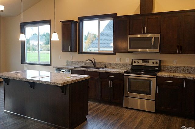 {Last home available in this community} Absolutely stunning, farm house architectural home situated on just over 1.5 level acres. Convenient living ALL on one level. 9 ft ceilings 8x12 pitch roof, fully wood wrapped windows and unique covered front and back porches. Home feats beautiful open concept with elegant interior finishes, master bed incl. his/hers walk in closets and 5 piece bath. Detached shop/garage for all your projects. Located minutes I5, & shopping.
