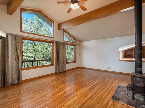 This home presents the BEST VALUE of available properties on Lookout Mountain. At $274/finished s.f., it offers plenty of $$room for remodeling with the average Lookout Mountain sold price approximately $100/s.f. higher than this! Experience the beauty of foothills living with easy access to I-70. Located next to the historic 1879 Rockland Community Church, this home is privately situated and has no covenant control. Fence for your kids and pets and park your RV and boat as you wish. Vaulted great room has wood-burning stove, hardwood flooring and newer plate glass windows to showcase the south-facing mountain views. Slab granite kitchen offers stainless appliances, tile backsplash, pantry closet, built-in desk, glass-front cabinetry, bar seating and access to broad deck with adjoining dog run and views. Vaulted primary suite features its own balcony plus updated tiled five piece bath with a jetted tub, seamless shower door, raised Corian topped vanity and large walk-in closet with organizers. Two other main level bedrooms along with a full bath plus an office niche provide a floor plan ideal for working at home and living on one level. Walk-out level includes non-conforming 4th bedroom, 3/4 bath, French doors to 2nd office or gym and a family room with wood-burning fireplace and access to a large patio + sprinklered grassy lawn with aspens and flower garden. Laundry room has chute from above, cabinets, built-in ironing board and a utility sink. Newer washer/dryer are included. Plenty of room exists on the walk-out level to add a 2nd efficiency kitchen for multigenerational living. Furnace was replaced in 2023, hot water heater replaced in 2022, septic replaced in 2021. The home has both gas forced air and gas hot water baseboard heating systems. Permitted for a domestic well, the water system includes reverse osmosis at the kitchen sink, water softener and 1,500 gallon cistern storage. Livable functional home is being sold in its "as is" condition.