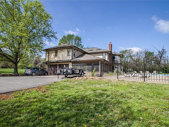 Large windows throughout the home bathe the interiors in natural light, creating a warm and inviting atmosphere. The carpeted bedrooms offer cozy retreats, each designed with comfort in mind. Step outside to your private oasis, where a massive, fenced-in pool awaits—perfect for summer gatherings or quiet mornings by the water. The expansive acreage ensures unmatched privacy and endless possibilities for outdoor enjoyment, whether you're exploring wooded areas, starting a hobby farm, or simply soaking in the tranquility. With a two-car garage and a setting that feels like a private resort, this extraordinary home in Harrisonville is a rare find that offers the best of rural living with refined elegance.