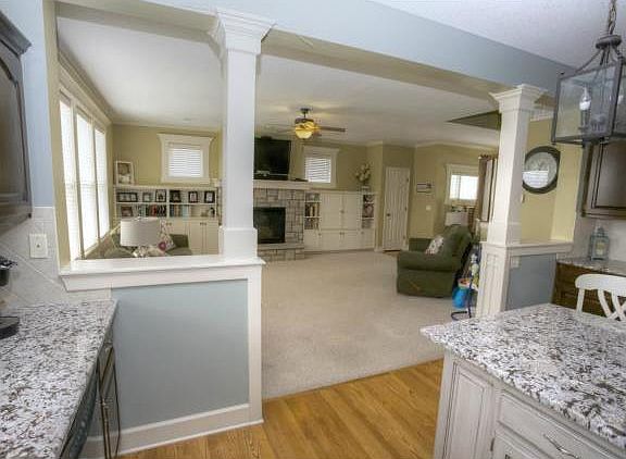 Stunning curb appeal is just the beginning for this Custom Built Craftsman home. Meticulous owners have remodeled kitchen with exotic granite counters, new lighting, stained cabinets and silgranite sink. You'll enjoy the large kit island and walk in pantry! Super cool desk area added to spacious breakfast room. Blt-in bookcases/media center surround warm stone fireplace can be enjoyed by open floorplan ..greatrm to Kitchen. New designer carpet on stairwell adds appeal from entryway! Master suite has dramatic