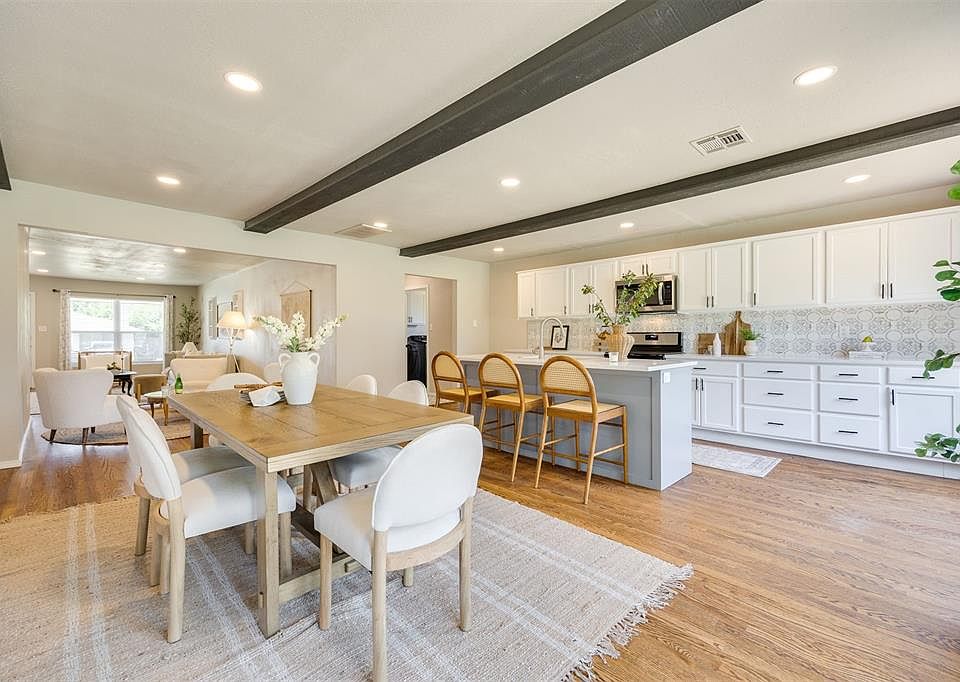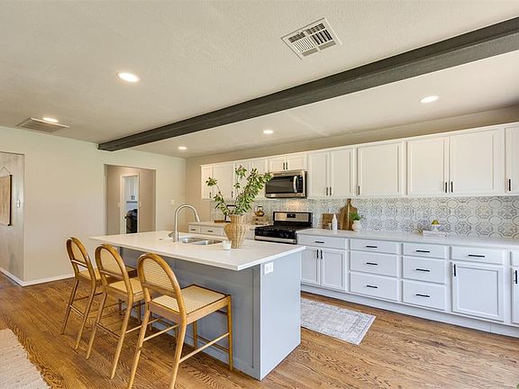 Welcome to this charming and renovated ranch-style home in the heart of The Village! The exterior provides desirable curb appeal with painted white brick, a covered front patio, and fresh flowers in the flower beds. Step inside and be greeted by a spacious open floor plan, natural lighting, and original wood floors that exude character. The spacious living area provides plenty of room for relaxation and entertaining, making it the heart of the home. The renovated kitchen area features updated cabinetry with ample storage, a large island, and stunning quartz countertops, perfectly blending style and functionality. Additionally, the convenience of a walk-in pantry ensures ample storage for all your culinary needs. Adjacent to the pantry is a generous laundry room, providing extra storage space and efficiency. This home has three inviting bedrooms, all with hardwood flooring. The primary bedroom includes a walk-in closet, abundant space for your wardrobe and accessories, and an attached primary bathroom. All bathrooms have been tastefully updated. The backyard features a large wooden deck and roomy yard. You will want to take advantage of the opportunity to own a beautifully renovated home in The Village. Schedule a showing today and experience all this home has to offer!