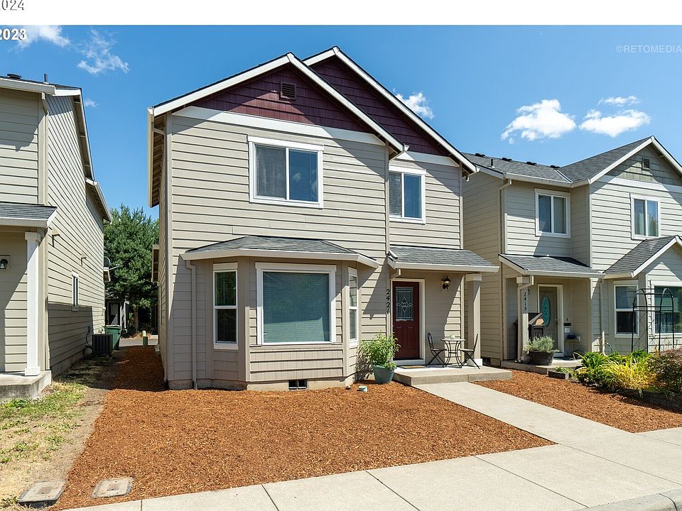 Great investment opportunity near Pacific University and Charming Downtown Forest Grove. Ready for first time buyers! Open floor plan, home in immaculate condition! The covered front porch will welcome you as you step into the bright entry way with wood laminate floors. The warm and inviting living room features a large bay window to let the natural light in and a cozy fireplace with wood wrapped mantel. Perfect designed kitchen has beautiful hickory cabinetry, lots of counters space, stainless steel appliances, large window above the sink. (Refrigerator stays too!) Enjoy the vaulted master suite with walk in closet plus a second closet, step in shower, double sink vanity. Spacious second and 3rd bedrooms with good sized closets. Convenient upstairs laundry room has a storage shelf and front loader washer and dryer included. Two car garage with room to store all of extras. High efficiency furnace and a new A/C. Neighborhood gazebo gives a wonderful place to gather for birthday parties. Easy Bard park, Aquatic center, Pacific University park, or downtown shops and Farmers Market. What a beautiful home in a great central location. Seller is Oregon broker license. Please text sellers agent for showing. Owner out of town July 19th to July 26th.