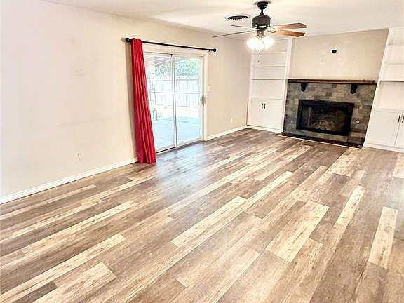 Charming 3-Bedroom Home in a Family-Friendly Neighborhood – 1,208 Sq Ft Fall in love with this inviting single-family home tucked into one of the area's most sought-after family neighborhoods. With 3 spacious bedrooms, 2 full bathrooms, and 1,208 sq ft of comfortable living space, this residence is turnkey ready and full of warmth. From the moment you arrive, the 2-car garage and gated courtyard patio set the tone for cozy sophistication. Step inside to a generous living room anchored by a striking stone fireplace, perfect for relaxing or hosting. The kitchen shines with freshly painted cabinets, new hardware, and a stylish backsplash. Both bathrooms have been thoughtfully updated, including a roomy hall bath with a modern tub/shower combo, and a luxurious primary en-suite with a large tiled shower and walk-in closet. Bedrooms offer plenty of space and storage, and the flow of the home feels effortless. Outside, the covered back patio is a dream for entertaining, overlooking a privacy-fenced backyard ready for play or quiet evenings. Recent upgrades include a new roof, HVAC system, and hot water heater, ensuring peace of mind for years to come. This gem is a must-see for anyone looking for quality, comfort, and community all in one package.