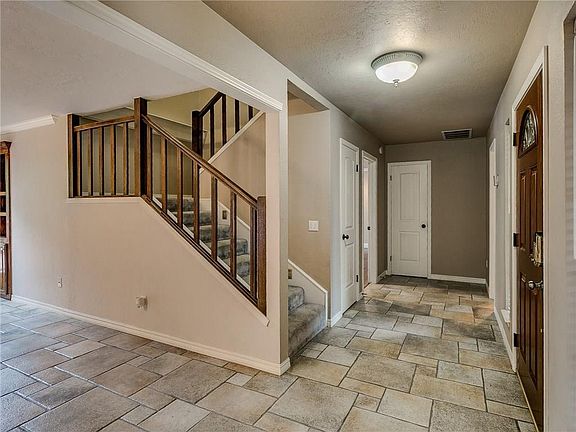 Refrigerator will stay if under contract by Tuesday May 30, bring an offer. Come see this amazing home in Chimney Hill. New roof, new exterior paint, new XL storm shelter. The kitchen has a custom island, convection oven combo, beverage cooler, extensive storage, and cabinetry with drawer slides. Enjoy your large deck with a pergola, water feature and low voltage led lights on the deck and landscaping. Fresh paint in living room, dining room, master bath, upstairs hallway, and stairway. New interior doors downstairs, 2 inch faux wood blinds and 5 of the windows have been replaced with triple pane windows. Come see this amazing home located in Chimney Hill, an Edmond Community with walking trails, 2 neighborhood pools, park & basketball & tennis court. The neighborhood walking trails are connected to The Hafer Park Trails.