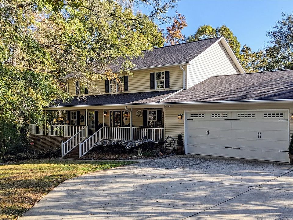 Move in ready, dreamy 2 story home with full wrap around covered porch with screened area sitting on right under 2 acres located in the county in a well established neighborhood! The downstairs offers an office, living room with gas fireplace and a 3 door style French door, dining room with tons of sunlight, full bathroom, large laundry room located off the garage with sink and large closet! Roomy kitchen with huge island, tons of granite countertops, lots of cabinet space, built in desk area with the sale to include all the kitchen appliances including washer and dryer! Upstairs offers 4 bedrooms with the primary bedroom offering dual closets with a walk in, double sinks & standup shower. This home offers a ton of storage with a pull down attic, roomy closets and an unfinished basement area perfect for all the things! Enjoy your coffee on the screened porch and watch the deers from the rocking chairs!!! Huge garage with plenty of room and extra long driveway for plenty of parking!!