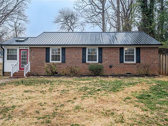 MOVE IN READY! Lovingly restored, freshly painted cottage features NEW 40 yr metal roof, NEW quartz kitchen counters, NEW sink, NEW soft close kitchen cabinets. Replacement vinyl windows installed in 2021, tankless water heater, HVAC system installed in 2020. Other interior features include NEW lighting fixtures in kitchen and bath, gleaming hardwood floors and plantation blinds throughout, skylights in sunroom and bath, and attic with pull down stairs. Home features two multi-purpose rooms! Sunroom and current laundry room may be used as playroom, home office, crafts room, etc. Great flexibility! Enjoy outside living with oversized yard, NEW wooden fence and freshly sanded and painted deck. Other exterior features include storage building, two NEW sump pumps, covered crawl space, French drain, and vinyl siding, gutters and downspouts installed in 2021. Furnished photos are virtually staged. Sunroom SF not counted in total sf. Superb location near Lawndale and Battleground!