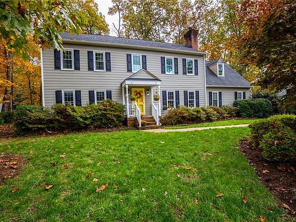 Wonderfully maintained 4BR 2.5 Bath sought after Roxshire Colonial located in the heart of Midlothian off of the Robious Rd corridor w/award winning schools (Robious,Robious, James River). Nestled on a private, 1/2 acre manicured lot, along w/double wide paved drive, fenced rear yard, & side entry two car garage. Huge upgrades include 30 yr shingled roof (2010), replacement windows (2010), HARDIPLANK siding, and gas heat. Spacious eat in kitchen w/newer hardwood flooring, granite countertops, stainless steel app, crown/chair rail moldings, & a pantry. Formal dining also w/hardwoods, bay window, chandelier, & moldings. Formal living room offers hardwoods & crown molding. Large carpeted family room w/crown& chair rail moldings & a floor to ceiling wood burning brick FP. Florida room off rear of home w/skylights, vaulted ceilings, fan, & access to large rear deck overlooking private yard. 2nd floor master suite w/walk in closet, wall to wall carpeting, & private bath w/dual sinks, tiled floors, tub/shower combo with jets. Three other wonderfully sized kids bedrooms (2 w/walk in closets) all w/wall to wall carpeting. Stainless steel lined chimney,walk up attic, & irrigation.