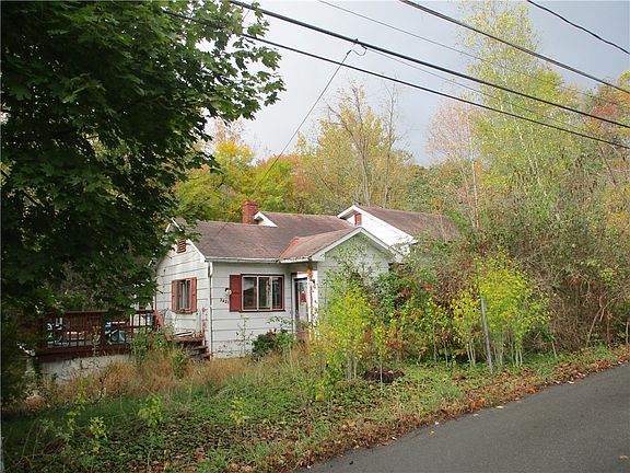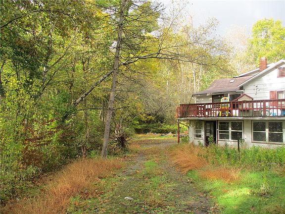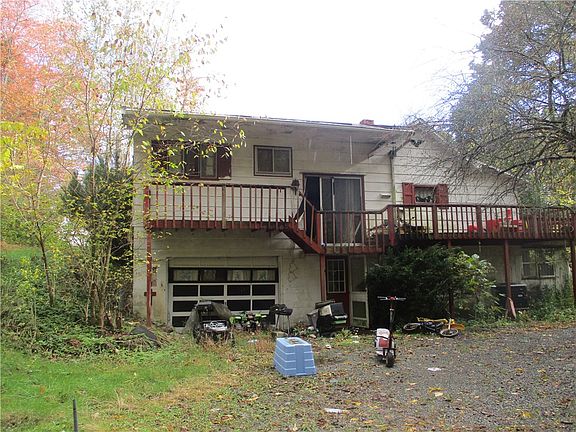 Investor Alert! 2 bedroom, 2 full baths on 1.5 acre lovely wooded lot! Attached garage, off street parking, wrap around 2nd level deck. Will be great property once rehabbed. Sold in as-is condition.