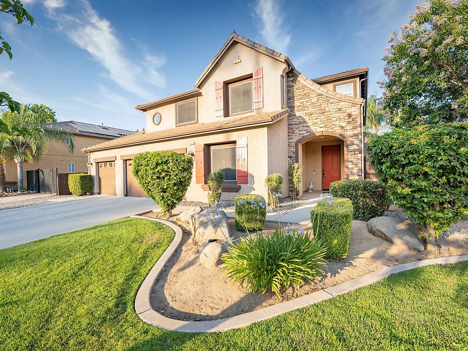 Gorgeous home located in a pristine Clovis E area. Standing beautifully in a very well maintained cul-de-sac neighborhood. This home offers many many amenities with a 5 bedroom/ 3 Full Bathroom, 3 living rooms with a home office. You will be greeted with well kept landscaping as an invitation to the entrance. This 2 story 3,445 sq ft home offers large kitchen with granite counter tops and back splash with an island, 3 living rooms (loft on 2nd floor) for entertainment, office or study room. 2nd floor offers 4 bedrooms with laundry room. Master bedroom has a relaxing fireplace with a huge bathroom & balcony to enjoy your mornings sunrises or evening sunsets. Backyard has a landscaped side yard with a area to add play area for your growing family or bon fires with a pebble rock area. As you turn you will see a full covered patio with an invitation to the Heated Spa and Pool with an tranquil water fall for your summers to come. Property has fully paid Solar.