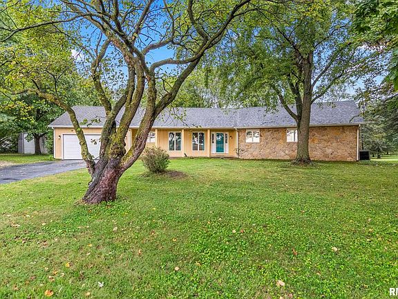 Check out this rare find west side ranch style home on almost an acre lot with 20 x 40 outbuilding and an extra detached 2 1/2 car garage in Pleasant Plains School district. Enjoy quiet country subdivision living with lake privilege to fish and boat on Frontier Lake. This home features 3 main level bedrooms with a primary suite and walk-in closet, 2 1/2 bathrooms and a main level laundry room located in the mudroom off the attached 2 1/2 car garage. This home has a wood burning fireplace in the living room that overlooks the wooded tree line, Anderson Windows, and full walk-out unfinished basement. Plenty of extra space to create extra finished rooms, recreational room, or office space. Outdoors you will enjoy relaxing after a busy day on the large private deck with water brook feature nearby, large .88-acre lot where it is common to have deer in your back yard. Schedule your tour today!