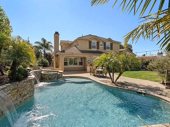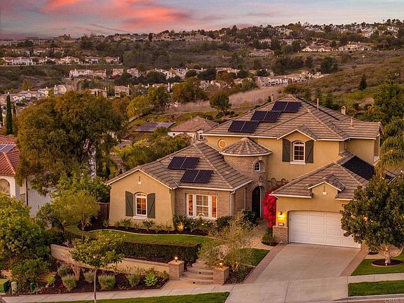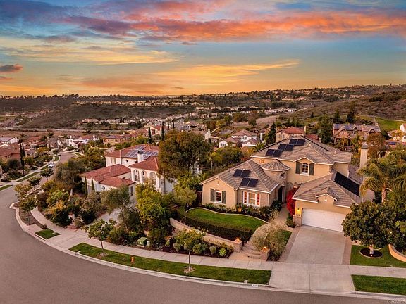 STUNNING VIEWS, SOLAR HEATED POOL/SPA, DOWNSTAIRS PRIMARY BEDROOM SUITE, AND PRIVATE/QUIET LOT! If you’ve been looking for a beautifully upgraded home in the highly coveted La Costa Greens neighborhood, then this is the home for you! Welcome to this private oasis that lives like a single story with gorgeous views, a spacious yard with a pool and spa on 0.29 acres, and a downstairs primary bedroom suite (with an additional guest bed and ensuite bath downstairs). It’s one of the most desired floor plans in the community. Upgrades & features incl. 4 BD/3.5 BA + OFFICE + LOFT (1st floor master suite & 2nd ensuite), stunning chandelier in the entryway, gourmet chef’s kitchen with granite countertops and stainless steel appliances, beautiful hardwood & tile flooring, new carpet on first level, new gas water heater, crown molding, custom built-ins, spa-like master bath w/marble flooring & counters, a formal dining area w/ French doors, saltwater pool & spa with waterfalls and OWNED POOL/SOLAR heating, upgraded landscaping including lush gardens filled with fruit trees, blooming roses and bistro lighting, built-in bbq, AC & whole house air filtration system, safe installed and bolted to the floor, Serena & Lily wallpaper in powder room and downstairs guest room, 220 volt outlets in garage and laundry room, leased home solar and much more! The La Costa Greens community offers resort-like amenities with a private resident clubhouse with fitness room, heated 25 meter pool, cabanas, and tennis courts. This home is a short distance to award winning schools, shops and restaurants. Very close as well to the city of Carlsbad’s Aquatic & Sports park "ALGA NORTE", featuring ball fields, skate park sections, dog park, playgrounds & an Olympic-sized aquatic center.