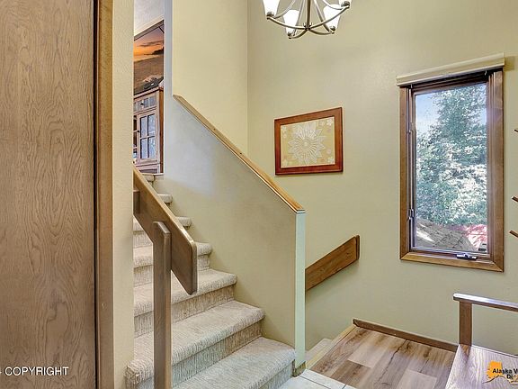 This home is in immaculate condition in a well-established friendly neighborhood. Enjoy the two-story floor plan with. master unit, second bedroom/bathroom, living, dining, and kitchen on upper level and third bedroom/bathroom and additional living area on lower level. South facing deck perfect for soaking up the Alaskan sun, fenced yard, shed, and swing set. Fresh paint and new luxury vinylflooring throughout. Easy access to shopping, great schools, near trail system, and mountain views. This home is sure to please so schedule your showing today!