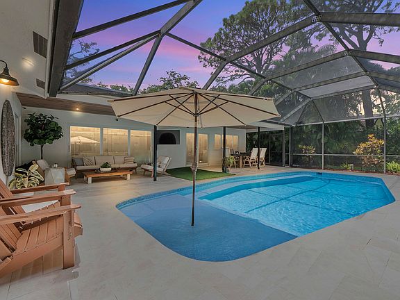 Leave daydreams behind and embrace a serene, tranquil lifestyle in your own private, oasis nestled within the prestigious tree-lined streets of Boca Raton's most picturesque neighborhoods, Millpond. Tucked away on a quiet cul-de-sac street, this fully renovated 4-bedroom, 2.5 bath home spans 2,370 sq. ft. and is perfectly positioned to capture sweeping views of the new sparkling saltwater pool with summer kitchen nestled against lush landscaping and a private community park.The 2025 metal roof is not just a bold design feature, but offers a 50-year lifespan, superior energy efficiency and the best insurance rates. Full-impact windows and doors provide added safety and storm protection, giving you lasting peace of mind. A newer Generac 22KW generator powers the entire home for uninterrupted service in the event of a storm. Inside, the heart of the home is the open-concept eat-in kitchen, complete with a large island, new Quartz countertops, solid wood cabinetry, stainless steel appliances, and views that make cooking a joy. The house has a formal living room, a family room with custom cabinetry, chic and modern new wood floors, recessed lighting, formal dining and new window treatments.