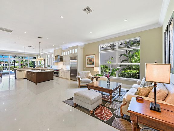 Located in the Banyans community of the prestigious Broken Sound Country Club, this totally renovated home with contemporary lines, crown moldings, 18ft ceilings and breathtaking long, lake views. With over 2,300 living square feet, this stunning 3 bed 3 bath home has been updated with beautiful marble floors and impact windows throughout. Open concept floor plan includes gourmet kitchen, marble counters, oversized center island, Wolf gas range, stainless steel Sub-Zero refrigerator, Wolf microwave, and Thermador dishwasher.The primary suite has pool and lake views, his/her walk-in closets and an updated spa-like bathroom. Private pool and spa overlooking beautiful lake views. New roof in 2019. Water purification and water softening systems. The information herein is deemed reliable and subject to errors, omissions and changes without notice. All measurements are approximate. Buyers must pay a $150 application fee and complete the HOA application for Banyans HOA approval prior to closing. Buyer to pay Banyans $1810 HOA fees quarterly. Buyer to pay a one time $4000 compliance fee to Broken Sound Master Association (BSMA) at closing. New owners wait 1 year to rent.