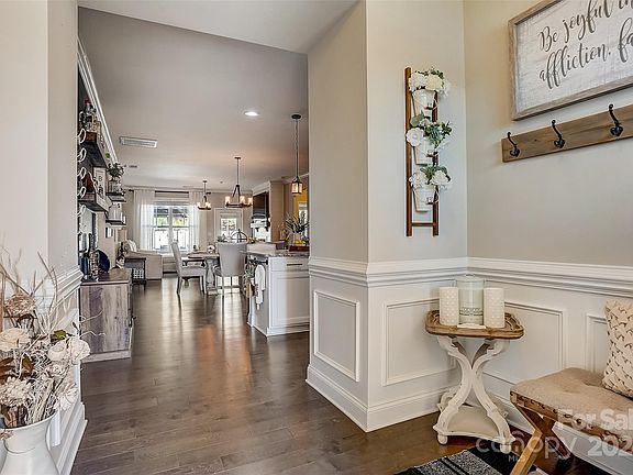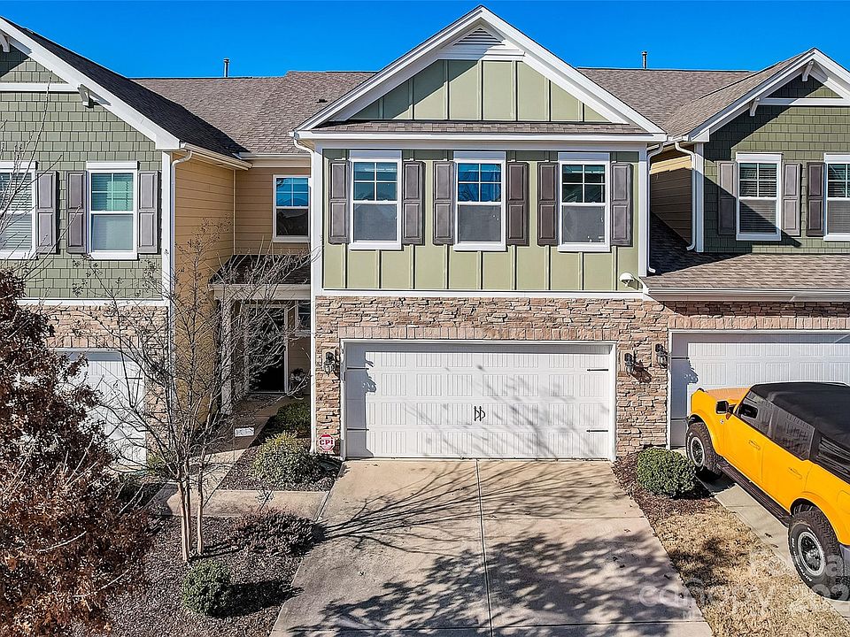 Come see this wonderfully kept and elegantly appointed townhome just outside of Tega Cay. As you enter the foyer, the entire open concept main living area can be seen; the kitchen has a large island that overlooks the dining and living room areas. The living room features a faux fireplace that is ready for an electric insert. Off of the living room is the fenced back yard area, featuring a tiled patio. Finishing off the main floor are a full bathroom and guest bedroom with built-in shelves (currently being used as an office). Upstairs you will find a loft area, two more secondary bedrooms, another full bathroom, the laundry room with cabinets, and a beautifully upgraded primary suite. The primary bathroom has been upgraded with a glass enclosed tile shower. Forest Grove also features a community pool and playground near the Zoar Rd entrance.
