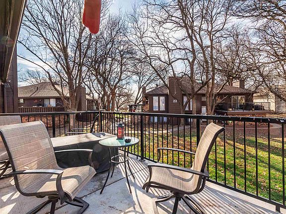 Welcome to one of the best kept secrets in Wichita. Enjoy condo living in the beautiful Treehouse Condominium Addition tucked away in a park like setting in the Goddard school district. Charming 2 bedroom 1.5 bath condo. Image relaxing in front of the beautiful woodburning stone fireplace with gas starter in the large vaulted ceiling living room, or sitting out on the balcony enjoying your quiet cabin in the woods. The spacious kitchen with eating bar has been update with beautiful granite countertops with stainless steel appliances. Treehouse Condo owners enjoy use of community pool, lots of green space, and nearly direct access to Pawnee Prairie Park. HOA covers exterior maintenace, lawn care, snow removal and trash.