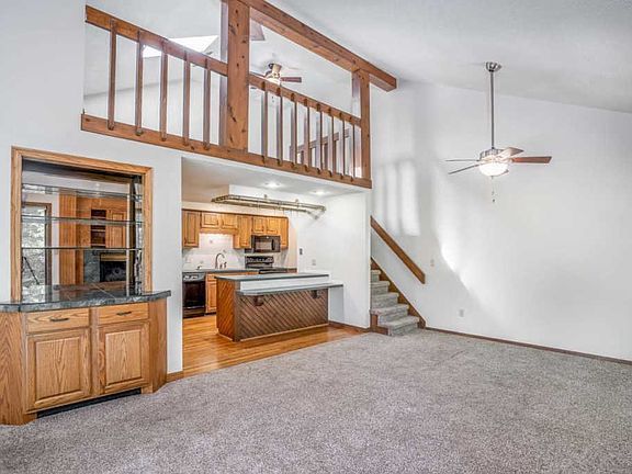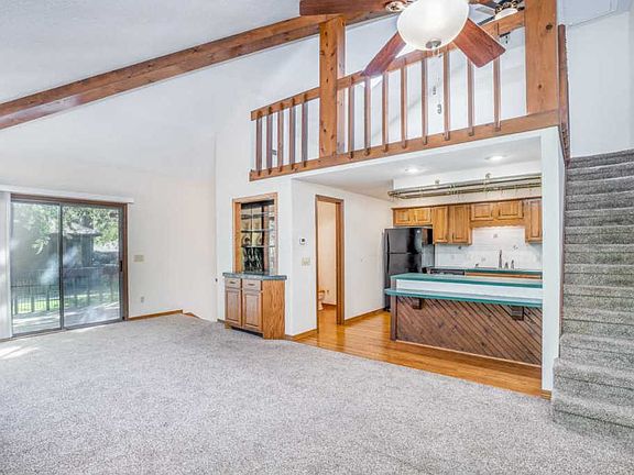 Split level, vaulted ceiling, all windows new in 2020, new HVAC 2022, loft/bedroom above the living room, gas fireplace, 8'x16' new concrete deck.
