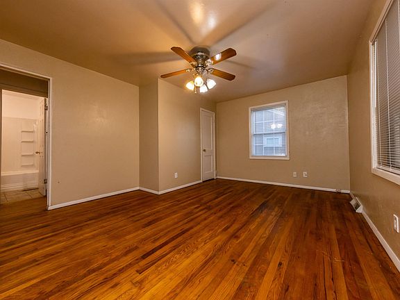 Downsize your living or start your rental portfolio with this cute as a button home. Main floor living with washer/dryer hook ups in the garage, adjacent to the extra storage room and rear exit to the fenced backyard. Hardwood floors in the bedrooms, hall and living room. Long eat in kitchen with extra cabinetry and storage. Central location with easy access to the Shunga Trail system. Storm Shelter in back yard and another storage shed and swing set!