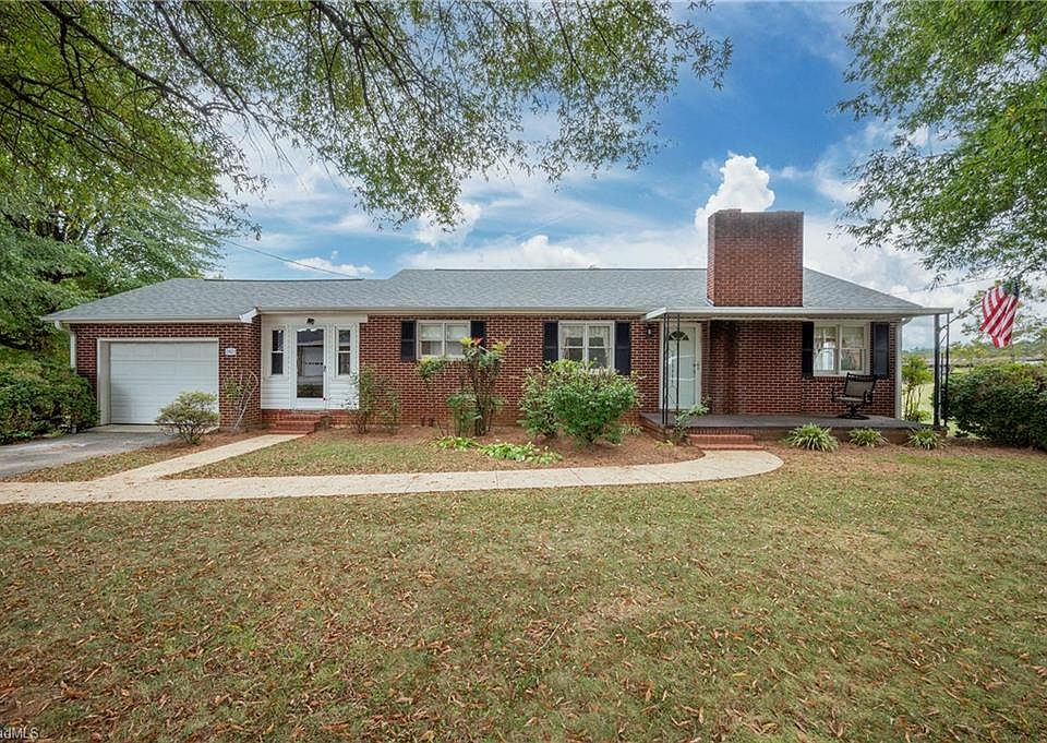 Brick ranch set on 4+ acres in Yadkin County. Home offers full unfinished basement with fireplace, a sunroom, a breezeway with laundry area, and attached 1-car garage with garage door opener. Gas log fireplace in living room. Hardwoods are under carpet. Detached 3-car carport has power and concrete floor, with enclosed workshop in back portion that is finished and has tile floor and lights. Land is level and partially wooded. Property is zoned as community business. This property has so much potential!