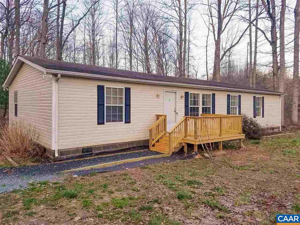 One level living 3 BR 2 full bath spacious modular home (not doublewide) with ramp access on 3 partially wooded acres. Bright living room AND family room open to spacious kitchen with island and plentiful cabinets. Master bedroom with walk-in closet and attached full bath with garden tub, shower stall and double vanity. Full hall bath off foyer to laundry room off kitchen. Convenient to Ruckersville, Charlottesville, NGIC, shopping and dining. One year home warranty included with good offer. Vacant and easy to show.