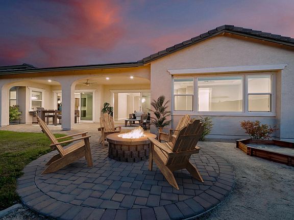 This beautiful Taranto floor plan is perfectly situated on a corner lot in the Sorrento Trail section of Bella Vista Ranch. With limited inventory, this is a rare gem you won't want to miss. The spacious layout is open and airy, with plenty of room for your lifestyle and belongings. The great room is perfect for entertaining, with an expansive island in the kitchen and western sliders that lead to the beautifully finished backyard with a horseshoe pit, large covered patio, and gas fire pit., The corner lot ensures privacy and space, and the three-car garage provides plenty of storage. All of the bedrooms are spacious and all have en suite bathrooms! The home is virtually staged, so you can easily envision the life that awaits you within these walls. Don't delay. This home presents a golden opportunity to embrace the dream of indoor-outdoor living in a safe and prestigious community. Zoned for top rated schools and close to shopping, walking trails, restaurants, and city parks. Washer, dryer, and refrigerator are all included making your transition seamless. This home is immaculate and ready for your most discerning buyers!