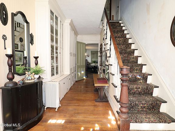 Step into a living piece of Niskayuna's history, the oldest home in town, where centuries-old charm remains beautifully preserved. Located on Troy Schenectady Road (Route 7), this home exudes character with its post and beam ceilings, original home posts in the loft, an old-fashioned dressing room, and stunning decorated ceilings. The grandeur of vaulted and cathedral ceilings adds to its timeless appeal. While honoring its past, the home has been carefully maintained with new windows, a new roof, and updated plumbing and electric with a new service box. Solar panels are fully owned. A separate entrance offers the perfect setup for a possible in-law suite or teenager retreat, while the new circular driveway, two-story shed, and carport complete this extraordinary historic treasure.